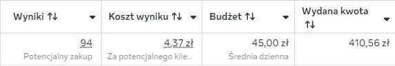 Koszt pozyskania potencjalnej klientki wyniósł tylko 4,62zł (średnia branży w tym przypadku to ok. 20-35zł)